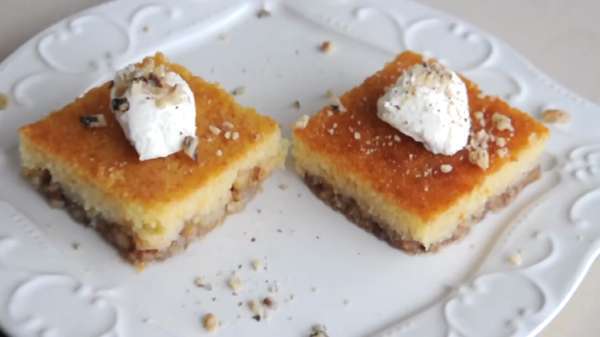 Revani severlerin beğeneceğine inandığım bol cevizli nefis bir şerbetli tatlı tarifimiz var. Yapımı çok kolay ancak sunumu ve lezzeti klasik revani tariflerine göre daha gösterişli olan bu tarifimizi geçtiğimiz güncelerde kızkardeşim Esra ile birlikte çektik. Tabanı yoğun ceviz dolgulu, üzeri ıslak şerbetli yumuşacık bir kek olan tadına doyum olmayan bir tarif. Revani tarifi, cevizli, havuçlu revani ilginizi çekiyorsa işte tarifimiz :) İlk olarak tatlımızın şerbeti şerbet hazırlanır. 3 su bardağı şeker ve 3,5 su bardağı su küçük bir tencereye alınarak kaynamaya bırakılır. 15dk kadar kaynayan şerbetimize birkaç damla limon suyu damlatılarak 5dk daha kaynatılır ve ocaktan alınır. Şerbet soğumaya bırakılır. Çırpma kabına 3 adet Yumurta ve 3 türk kahvesi fincanı şeker alınarak köpük köpük olana kadar çırpılır. 1 türk kahvesi fincanı sıvı yağ, 3 türk kahvesi fincanı yoğurt eklenerek tekrar çırpılır. 3 türk kahvesi fincanı İrmik ilave edilir. 3 türk kahvesi fincanı Un, 1 paket kabartma tozu ve 1 paket vanilya hamura eklenir ve karıştırılır. Rendelenip suyu sıkılan 1 adet havuç da ilave edilerek hamur karıştırılır. Yağlanmış fırın kabının tabanı iri çekilmiş ceviz ile kaplanır. Üzerine hazırlanan hamur dökülür. Hamurun eşit bir şekilde yayılması için fırın kabı ileri geri sallanır. 170 derece önceden ısıtılmış fırında kekimizin üzeri kızarana kadar yaklaşık 35dk pişirilir. Kekin ilk sıcağı çıktıktan sonra üzerine şerbetin yarısı gezdirilir. Tatlı istenen şekilde dilimlenir. Kalan şerbetin tamamı tatlının üzerine gezdirilir. Tatlımız hazır 3-4 saat beklettikten sonra tatlımızı dilediğiniz şekilde süsleyerek servis edebilirsiniz. Yanına dondurma ya da kaymak da çok yakışacaktır. Afiyet olsun.