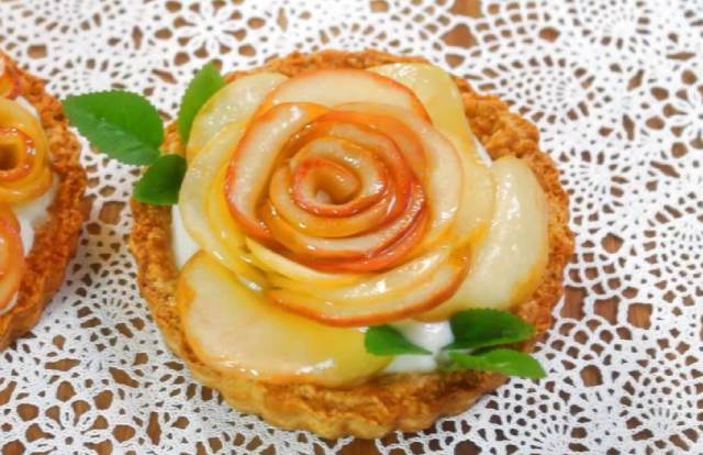 Elmadan tartlarınızın, keklerinizin üzerine yapabileceğiniz çok şık bir süsleme. Üstelik bu elmalı gülleri yapması düşüdüğünüzden de kolay.. Malzemeler: Tartlar için kullandığım elmalı turta hamuru. Daha gevrek ve benim daha çok tercih edeceğim pay hamuru 1 ölçü pişmiş boş tart tabanı (Tek kişilik veya büyük bir tane de olabilir.) yaklaşık 4 adet elma 3/4 su bardağı şeker yarım su bardağında 1 parmak fazla su ayrıca elmaları bekletmek için limonlu su .