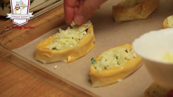 Sandal börek Malzemeleri: 2 adet yufka 250gr peynir 50gr kaşar peyniri 2 adet yumurta (1 tanesinin sarısı böreklerin üzeri için) 100ml süt 100ml sıvı yağ 10 sap maydanoz