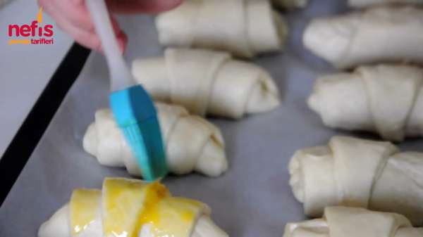 Malzemeler 1 su bardağı süt 1 çay bardağı sıvı yağ 1 yumurta (akı içine, sarısı üstüne) 1 yemek kaşığı kurumaya ya da 20 gr yaş maya 2 tatlı kaşığı tuz 2 çay kaşığı toz şeker Aldığı kadar un Arasına; 75 gr tereyağ (oda sıcaklığında yumuşatılmış) 100 gr beyaz peynir (ben maydanoz da ekledim)HazırlanışıMayayı ılık bir su da eritin. Yarım çay bardağı su yeterli olacaktır. Daha sonra süt, yumurta akı,tuz, şeker, sıvı yağ ve un ile hamurunuzu yoğurun. Hamuru 8 eş paçaya bölerek her birini tabak büyüklüğünde açın ve aralarına tereyağ sürerek üst üste dizin. Yağ hamurunuzun birbirine yapışmamasını sağlayacak ve böylece katmerli görünümü elde edeceksiniz. Üst üste koymuş olduğunuz hamuru fazla ezmeden 60-70cm e kadar büyütün. Ve pizza dilimi gibi dilimleyerek (12 dilim) sigara böreği sarar gibi geniş kısmına iç malzemenizi koyun ve sarın. Yarım saat mayalanmasını bekledikten sonra yağlanmış tepsiye dizerek üzerine yumurta sarısını sürün. 180 derecede ısıtılmış fırında pişirebilirsiniz.