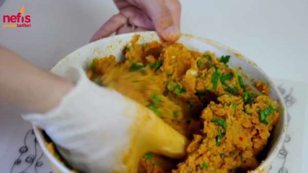 Kolay Mercimek Köftesi MALZEMELER 1 su bardağı kırmızı mercimek 1,5 su bardağı ince köftelik bulgur 1 baş kuru soğan 1 demet maydanoz Yarım çay bardağı sıvı yağ 1 demet taze soğan 2 yemek kaşığı salça (biber ve domates salçası karışık kullanabilirsiniz) 3 su bardağı su (gerekirse yoğurma aşamasında biraz daha eklenebilir) Yeteri kadar tuz kimyon pul biber karabiber HAZIRLANIŞI Mercimekler yıkanır, ayıklanır ve iyice yumuşayıncaya kadar haşlanır. Suyunu çekince bulgur içine atılır ve yarım saat kadar tencerenin kapağı kapalı olarak bekletilir. Soğan ince kıyılarak sıvı yağda kavrulur, içine salça eklenir. Ocaktan alınarak mercimeklere eklenir. İnce kıyılmış maydanoz, ince kıyılmış yeşil soğan ve baharatlar da ilave edilir. Biraz soğuduktan sonra bütün malzemeler el ile yoğrularak yumurta büyüklüğünde parçalar koparılır. Köftelere şekil verilerek marul veya roka yaprakları üzerine dizilir. Afiyet olsun...
