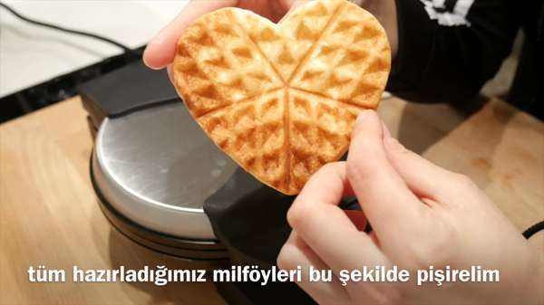 Milföy pastayı yaparken resimlerde gördüğümüz gibi incecik katlara bazen ulaşamıyoruz. Ama waffle makinesi veya tost makinesi ile bunu yapmak inanın çok kolay oluyor. İster tek kişilik mini pastalar hazırlayın isterseniz de yan yana getirerek büyük bir tane yapın. Ben içine nutella ve muz tercih etttim ama siz kremşanti yada muhallebi de tercih edebilirsiniz. Sadece incecik milföy katlarına fırın yakmadan da ulaşabilrsiniz.