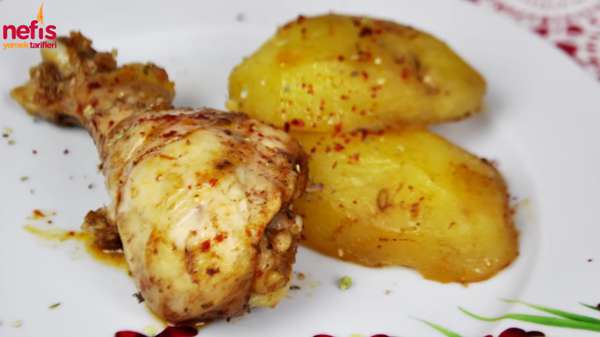 Malzemeler kişi sayısına göre tavuk baget (8-10 adet kadar) kişi sayısına göre orta boy patates (8-10 adet kadar) 1 tatlı kaşığı domates salçası baharat karışımı (yeni bahar, kimyon, kekik, kara biber, kırmızı toz biber, pul biber) Hazırlanışı Patatesler soyularak ikiye kesilir. Bagetler tencereye alınarak istenilen baharatlar üzerine serpilir. Ben yeni bahar, kimyon, kara biber, pul biber, kırmızı toz biber, kekik kullandım) Biraz karıştırarak bagetler baharata bulanır. Üzeri patates ile örtülür. Bir kasede domates salçası yarım su bardağı kadar suda çözdürülerek tavukların üzerine gezdirilir. Tencerenin kapağı kapatılarak kısık ateşte pişmeye bırakılır. Üzeri patates ile örtülü olduğu için tavuklar yumuşacık pişecektir. Hazırlanması çok pratik, kurtarıcı bir yemek, üstelik de yağ kullanmadan kendi suyu ile pişeceği için diyet yapanlar için de lezzetli bir öğün olabilir, şimdiden afiyet olsun:)