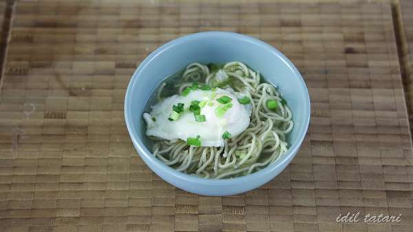 Afiyet olsun :) Ramen için Malzemeler: 1 yemek kaşığı susam yağı 5 diş sarımsak 1 tatlı kaşığı rende Zencefil 5 dal taze soğan Tabasco 3 bardak tavuk suyu 2 bardak et suyu 3-4 damla Balık Sos 3 yemek kaşığı Soya Sos 2 adet Yumurta Noodle Tuz, karabiber