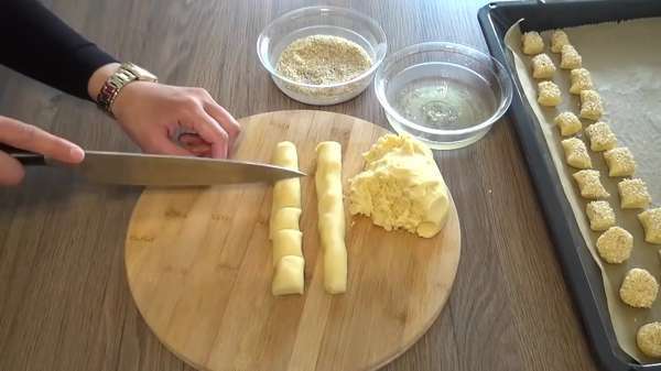 Malzemeler 125 gram tereyağı ya da margarin yarım çay bardağı sıvı yağ bir tane yumurta sarısı hamuruna girecek beyazı dışına. yarım çay bardağı Susam 2 tatlı kaşığı pudra şekeri bir çay kaşığı tuz 2 yemek kaşığı üzüm Yada elma sirkesi yarım paket kabartma tozu yaklaşık 2 su bardağı un Hazırlanışı yoğurma kabına yumuşak olan tereyağı ya da margarinimizi koyalım, sıvıyağ pudraşekeri tuz yumurtanın sarısı ve sirkeyi koyup karıştıralım en son unumuzu kabartma tozunu ilave ederek yumuşak ele yapışmayan kurabiye hamur elde edelim. hamuru şerit halinde ince uzun açalım bıçakla bir parmak kalınlığında keselim önce yumurta beyazına sonra da susama batırıp yağlı kağıt serili fırın tepsisine dizelim.isterseniz küçük yuvarlaklar da yapabilirsiniz bu kurabiyeyi.200 derecede ısınmış altüst ayardaki fırına koyalım altı üstü hafif kızarana kadar pişirelim yaklaşık 20 dakika.soğuduğu zaman afiyetle yiyelim.Kapalı bir kapta yaklaşık 1 ay hiç bayatlamadan kalıyor.