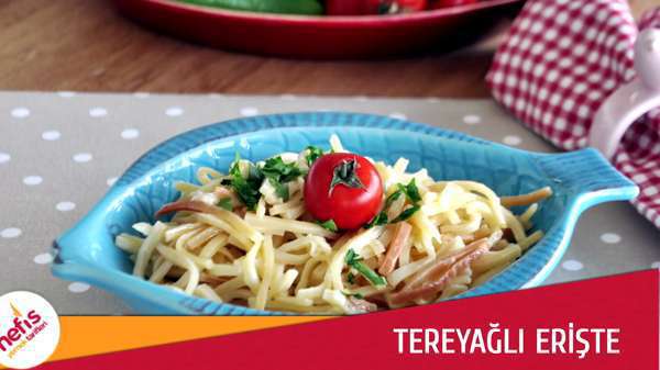 Ev eriştesinin tadına doyum olmaz, bir de miss gibi tereyağı ile pişirildiğinde nefis bir lezzet çıkar. Şimdilerde ev eriştesi yapmak için vakit bulamasak da hazır erişteler ile idare edebiliyoruz. Erişte tarifimizi deneyecek herkese şimdiden afiyet olsun Tereyağlı erişte Uygun bir tencereye 3 yemek kaşığı tereyağı ve 1 yemek kaşığı sıvı yağ alınır, Tereyağı eridikten sonra 3 su bardağı erişte tencereye eklenir ve eriştelerin rengi dönene kadar kavrulur. Kavrulan erişteye tuz eklenir ve 1 litre kadar eriştelerin üzerine çıkacak kadar sıcak su dökülür, Karıştırılarak tencerenin kapağı kapatılır ve erişteler yumuşayana kadar pişirilir, Erişteler piştikten sonra 10-15dk demlenmeye bırakılır, Afiyet olsun