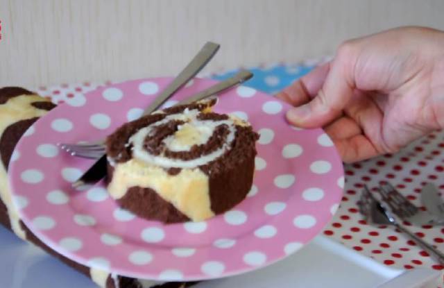 Hazırlanışı Pandispanya için yumurta aklarını sarılarından ayırıp köpürene kadar çırpın. Şekeri yavaş yavaş ilave ederek yumurta aklarına yedirin. Daha sonra sarıları teker teker yumurta akına ekleyerek karıştırın. Un kabartma tozu ve vanilyayı ekleyerek karıştırın. Küçük bir kaseye hamurdan 4 yemek kaşığı ayırıp 2 tatlı kaşığı unu ekleyip karıştırın. Diğer hamura 1 yemek kaşığı kakaoyu ekleyin. Sade hamuru krema torbasına koyun. Yağlı kağıt serilmiş fırın tepsisine gelişi güzel zürafa deseni çizin. Üzerine kalan kakaolu hamuru dökün. (bu işlemi kaşıkla yapmalısınız çünkü hamur miktarı fazla değil ve hamuru direkt olarak dökerseniz tam olarak tepside yayılmayabilir. Kaşıkla kontrollü dökün). Önceden ısıtılmış 190 derece fırında pandispanyayı 9-10 dakika pişirin. Bu arada muhallebiyi hazırlayın. Süt, un, nişasta ve şekeri karıştırarak pişirin. En son vanilya ve margarini ekleyip mikserle karıştırın. Sürekli karıştırarak sıcaklığının çıkmasını sağlayın. Pişen pandispanyayı düz bir zemine alın ve sıcaklığı çıkan kremayı pandispanyanın her yerine yaydırın. Bir adet muzu uzunlamasına ikiye bölün ve pandispanyanın kısa ucuna koyun. Yağlı kağıdı yavaşça kaldırarak rulo yapın. Temiz bir yağlı kapıda rulo pastanızı alıp sarın ve buzdolabında en az 3 saat dinlendirin. Afiyet olsun.